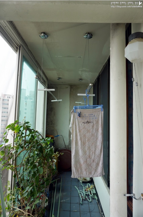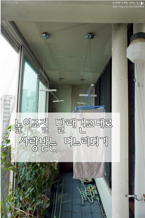 빨래건조대를 아예 낮게 설치해버리면,베란다에 나가서 지나다닐떄 불편한데, 이렇게 빨래를 넌후에는 높이를 조절해서 높게 해두면 되니까, 베란다고 넓게 사용할 수 있고, 빨래널을 때도 힘들지 않아 좋으시대요!